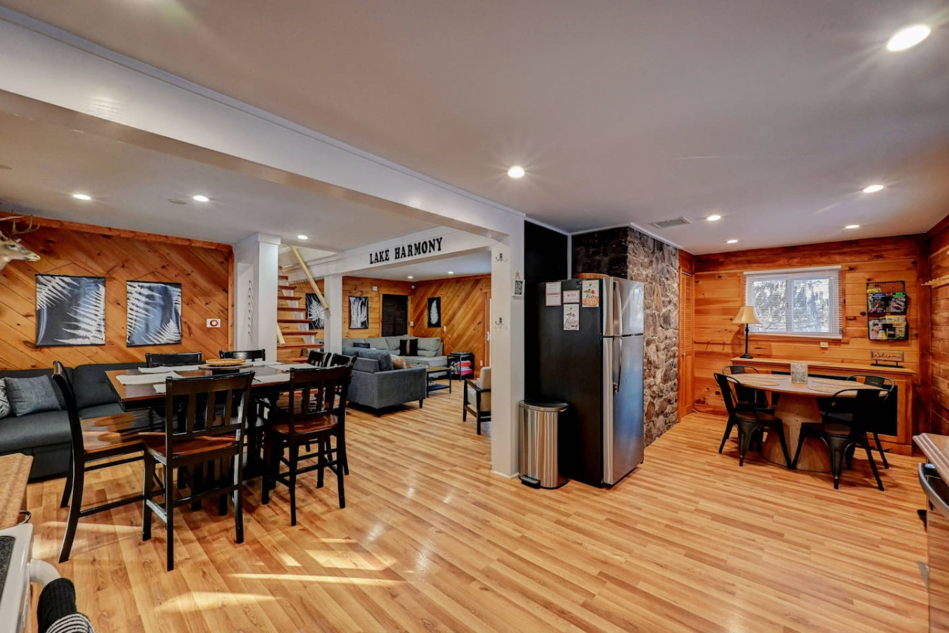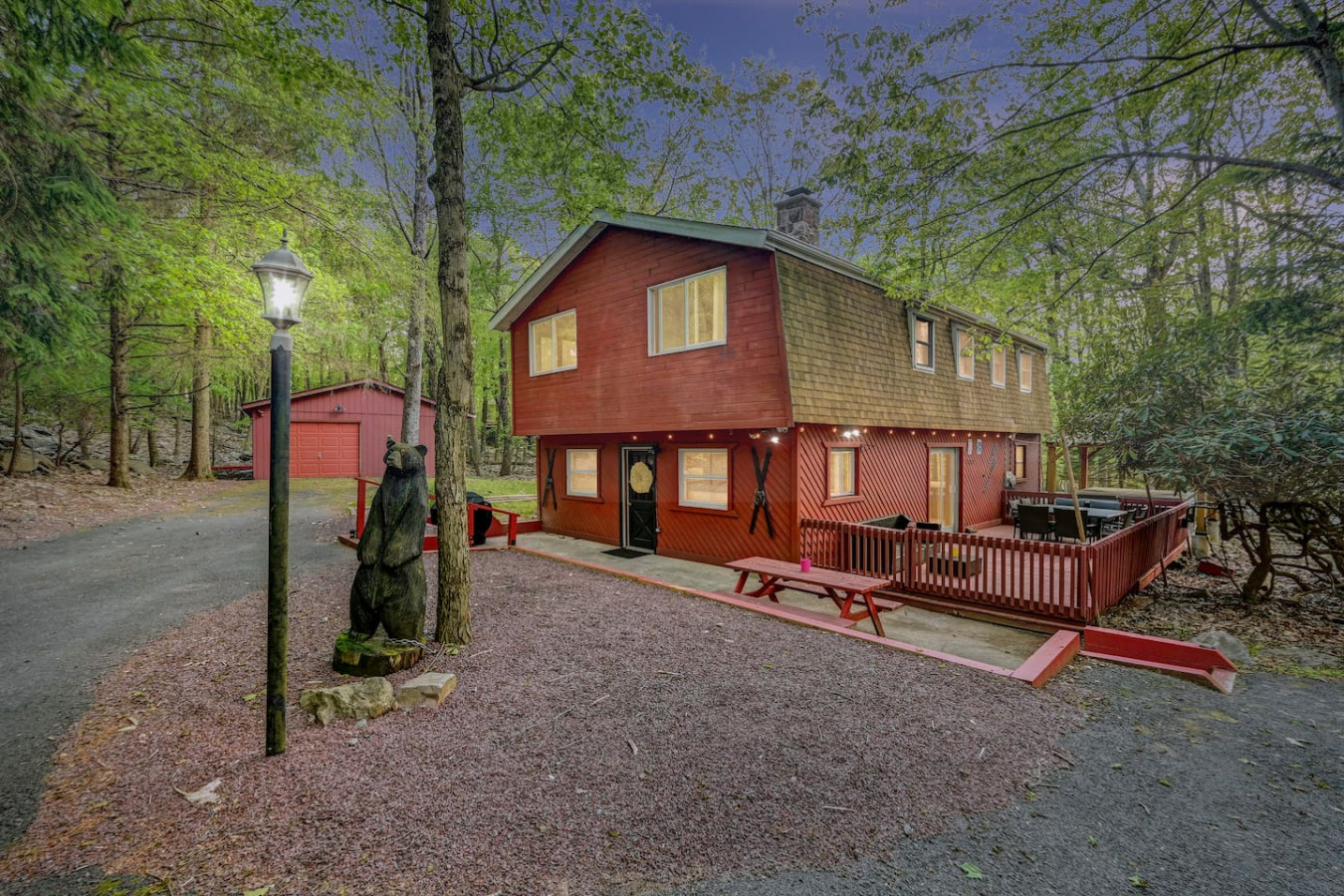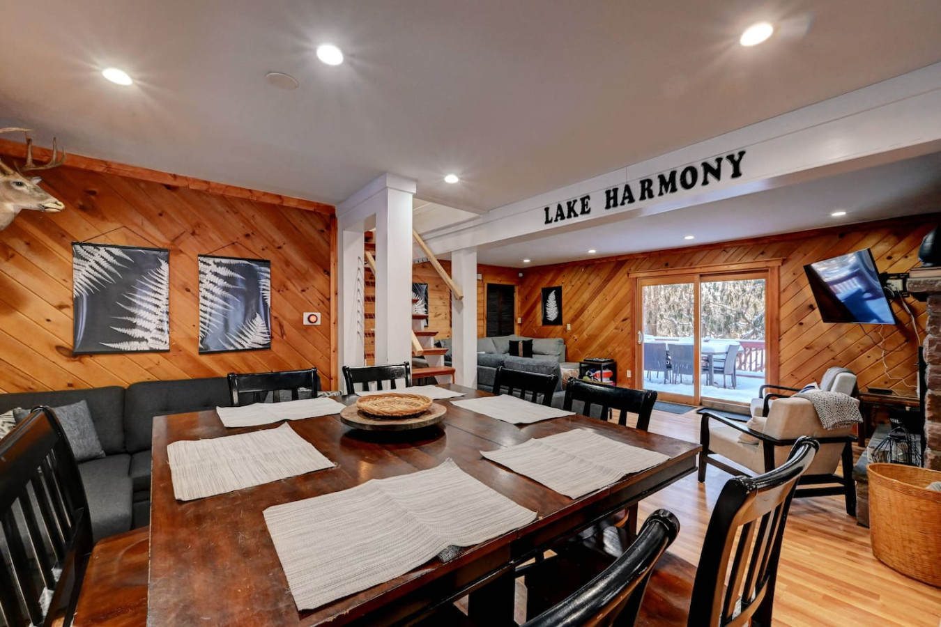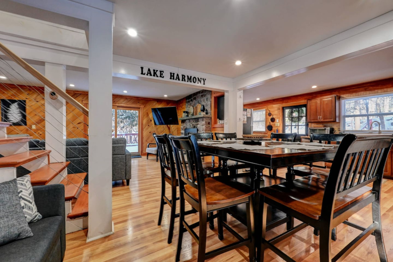 / nightNestled in the beautiful Pocono Mountains, our property boasts an outdoor Jacuzzi, perfect for soaking under the stars, as well as an indoor hot tub for ultimate relaxation. Our spacious and modern cabin features a cozy fire pit, ideal for gathering with friends and family. As an added bonus, our guests have access to the private Lake Harmony beach area, making this the perfect vacation spot for water lovers. Situated in the exclusive Estates area, our prime location offers easy access to a variety of restaurants, ski resorts (such as Jack Frost and Big Boulder), and popular attractions like Kalahari Resort. With plenty of activities and amenities to enjoy, our property is the perfect destination for a memorable vacation. And don't worry, if you need anything during your stay, we're just a call or text away. Book now and experience the beauty and convenience of our Lake Harmony cabin!