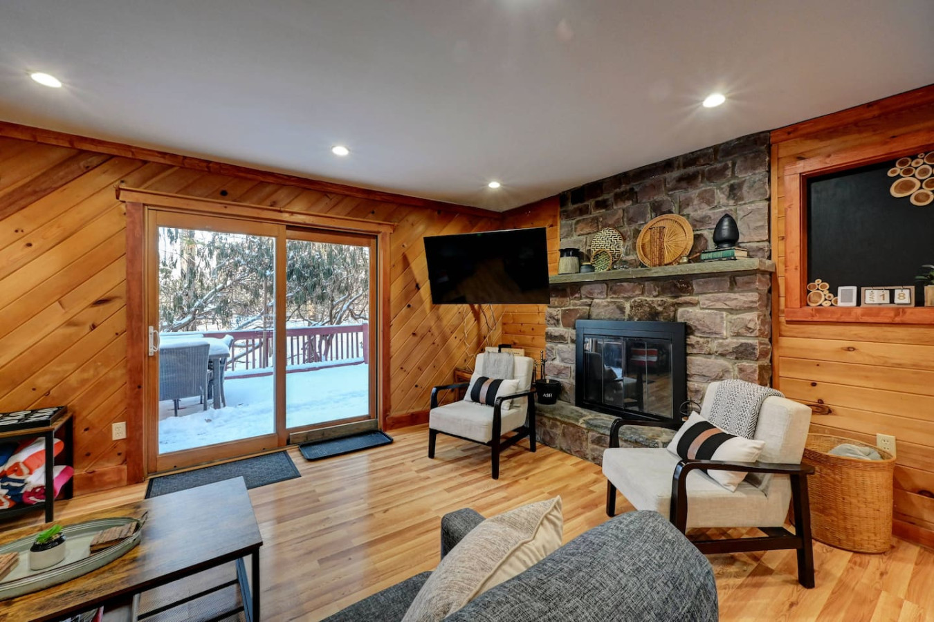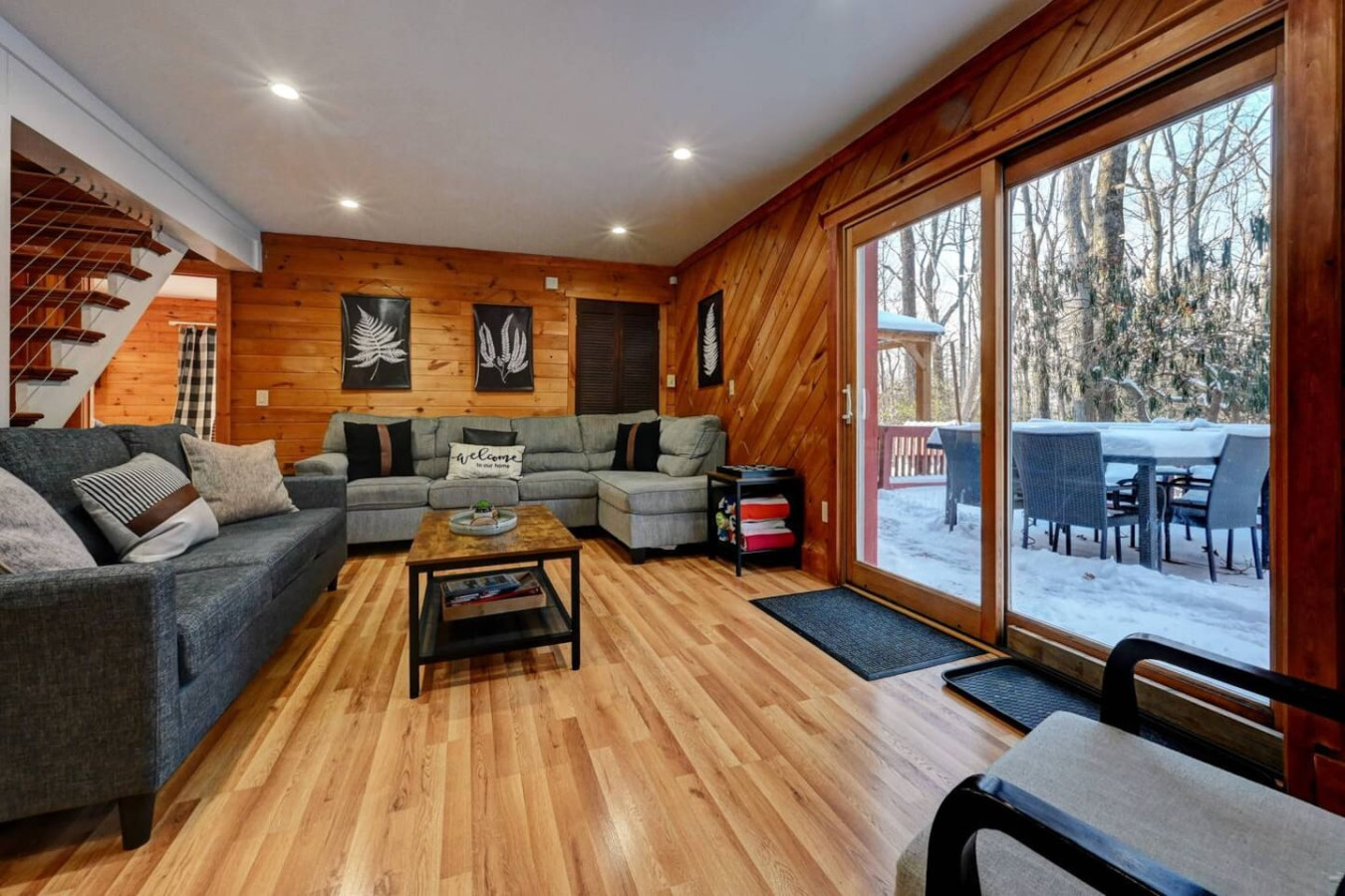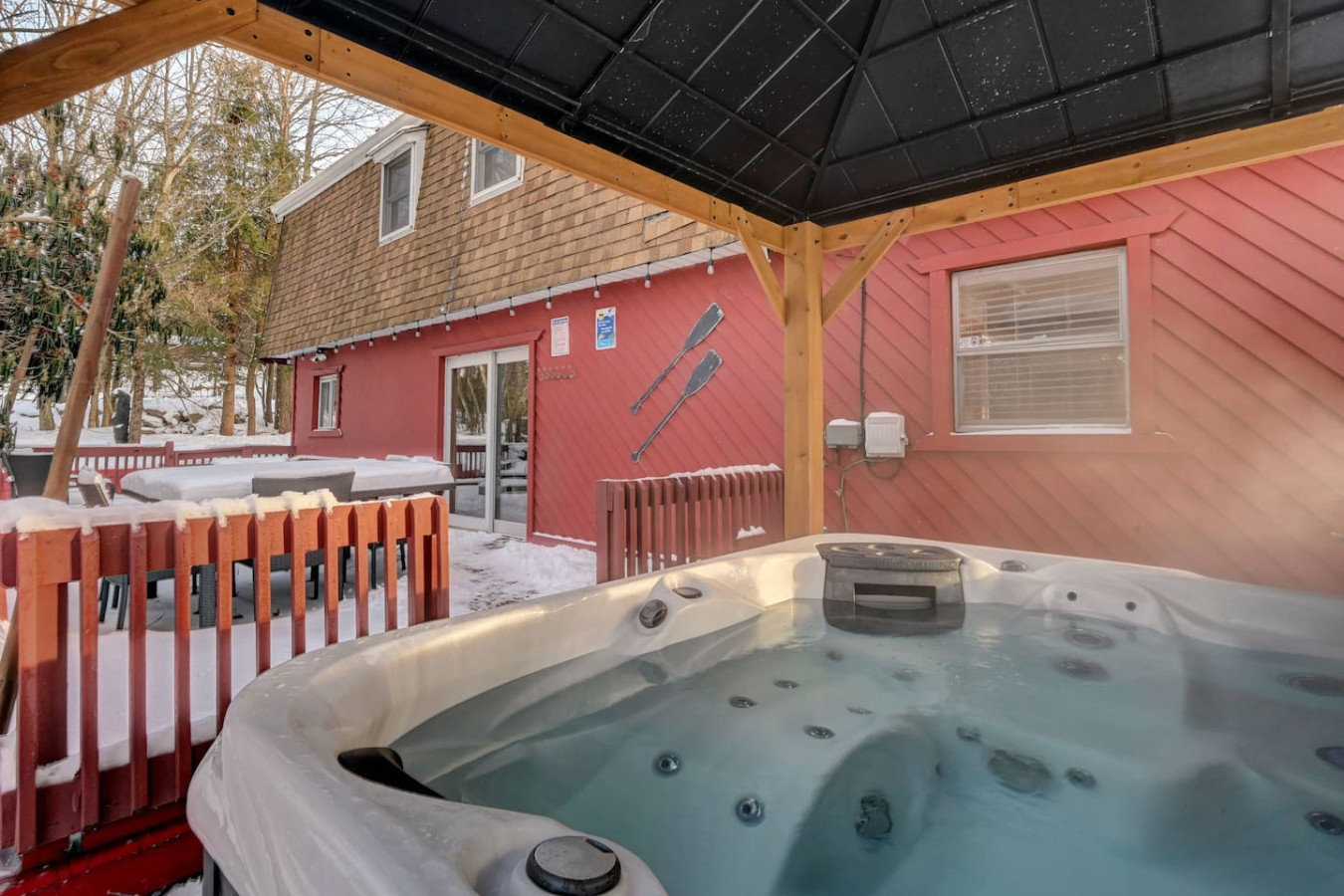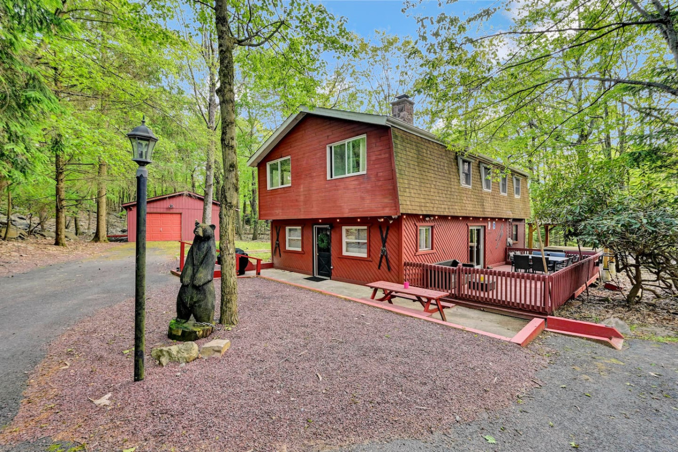 / nightNestled in the beautiful Pocono Mountains, our property boasts an outdoor Jacuzzi, perfect for soaking under the stars, as well as an indoor hot tub for ultimate relaxation. Our spacious and modern cabin features a cozy fire pit, ideal for gathering with friends and family. As an added bonus, our guests have access to the private Lake Harmony beach area, making this the perfect vacation spot for water lovers. Situated in the exclusive Estates area, our prime location offers easy access to a variety of restaurants, ski resorts (such as Jack Frost and Big Boulder), and popular attractions like Kalahari Resort. With plenty of activities and amenities to enjoy, our property is the perfect destination for a memorable vacation. And don't worry, if you need anything during your stay, we're just a call or text away. Book now and experience the beauty and convenience of our Lake Harmony cabin!