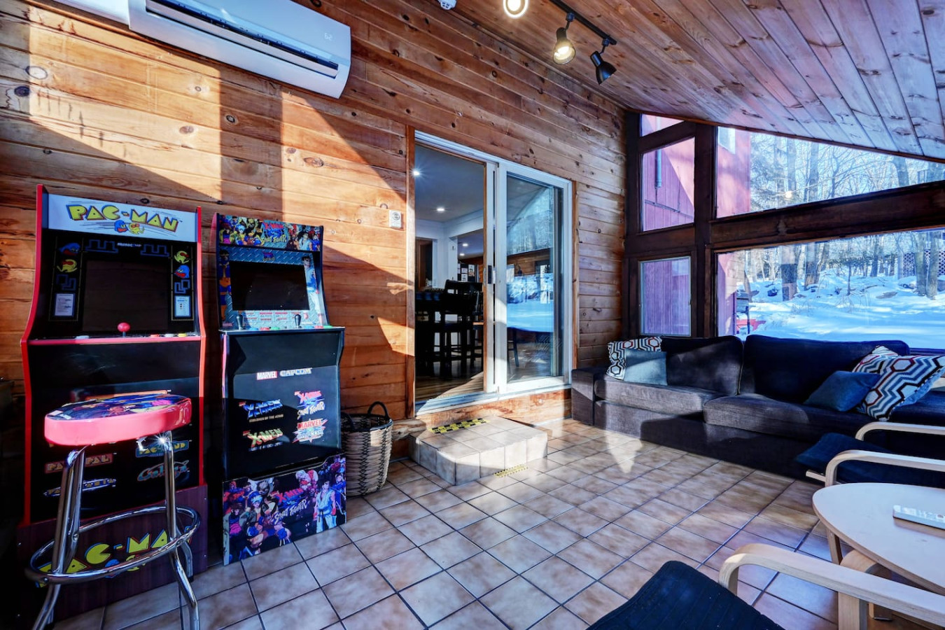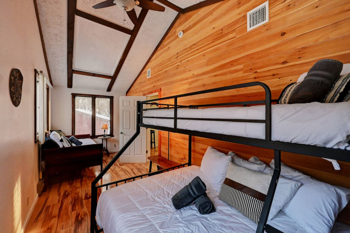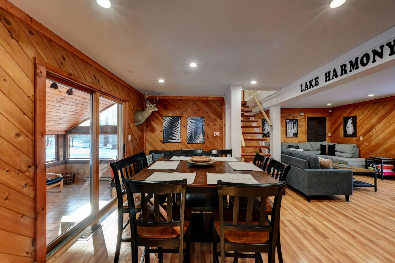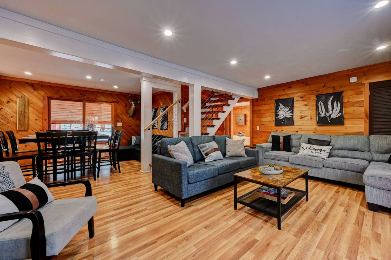 / nightNestled in the beautiful Pocono Mountains, our property boasts an outdoor Jacuzzi, perfect for soaking under the stars, as well as an indoor hot tub for ultimate relaxation. Our spacious and modern cabin features a cozy fire pit, ideal for gathering with friends and family. As an added bonus, our guests have access to the private Lake Harmony beach area, making this the perfect vacation spot for water lovers. Situated in the exclusive Estates area, our prime location offers easy access to a variety of restaurants, ski resorts (such as Jack Frost and Big Boulder), and popular attractions like Kalahari Resort. With plenty of activities and amenities to enjoy, our property is the perfect destination for a memorable vacation. And don't worry, if you need anything during your stay, we're just a call or text away. Book now and experience the beauty and convenience of our Lake Harmony cabin!
