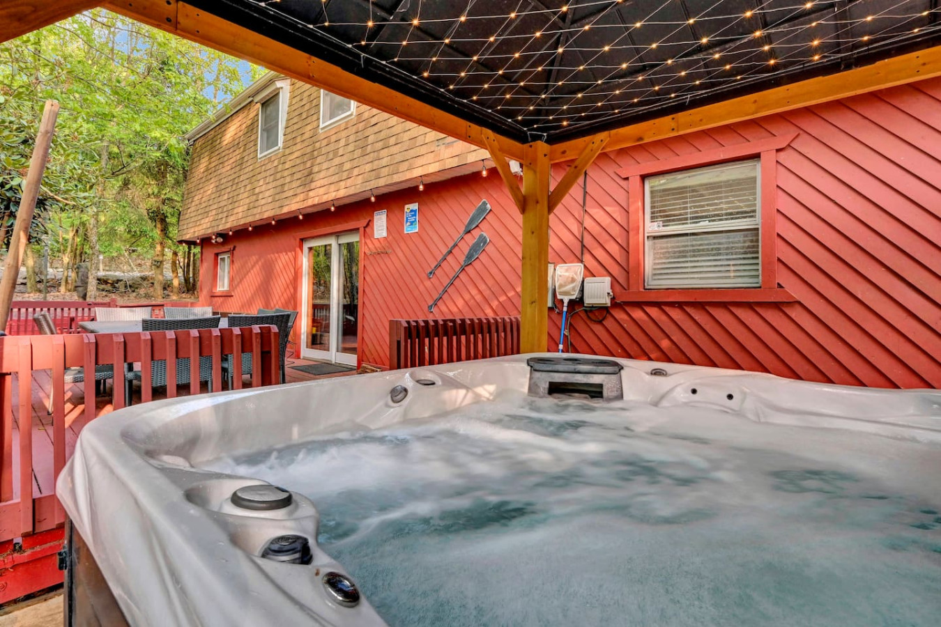 October 2025 4.00This house was perfect for a weekend getaway with my friends. We were a large group, so we appreciated all the beds. My only concern is that the water pressure was not great, which isn’t a huge deal, but I was really looking forward to using the indoor Jacuzzi. The low water pressure made it unusable; by the time the jacuzzi was filled, the water was cold. Overall, this is a good stay for a large group of people but it’s not perfect. The pros were that the place is clean, renovated, and has plenty of games and space to have fun on a rainy day. The hot tub is also enormous, and it was super fun to be out there at night with the overhead string lights. The cons are the low water pressure, making the showers, jacuzzi, and dishwasher less-than-ideal. Also a couple little things: the dishwasher was not properly affixed to the counter, so it falls out when you try to load it. Also, the hot tub might need a new lid without tears because it took nearly 10 hours to heat up to 100 degrees.
