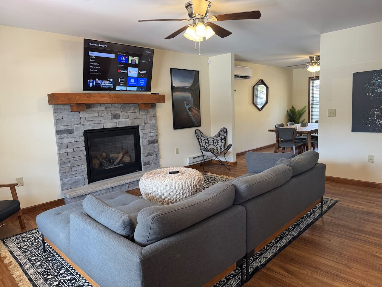 October 2025 4.00Beautiful location can’t be beat. Hosts were attentive and responsive. The home was clean and a lovely retreat and accessible to many amenities. Highly recommend. Only a few issues we ran into - our sheets and comforter were either stained or dirty on arrival. Hugo had the beds stripped and switched out same day. A+ service. As a previous reviewer mentioned, the mattresses were extremely firm and uncomfortable but we got used to it after a couple nights. Lastly, the kayaks were stored facing up and were filled with moldy rainwater. I needed to clean it up and cover the seat with a trash bag to use it. This could have been a due to a previous guest however.