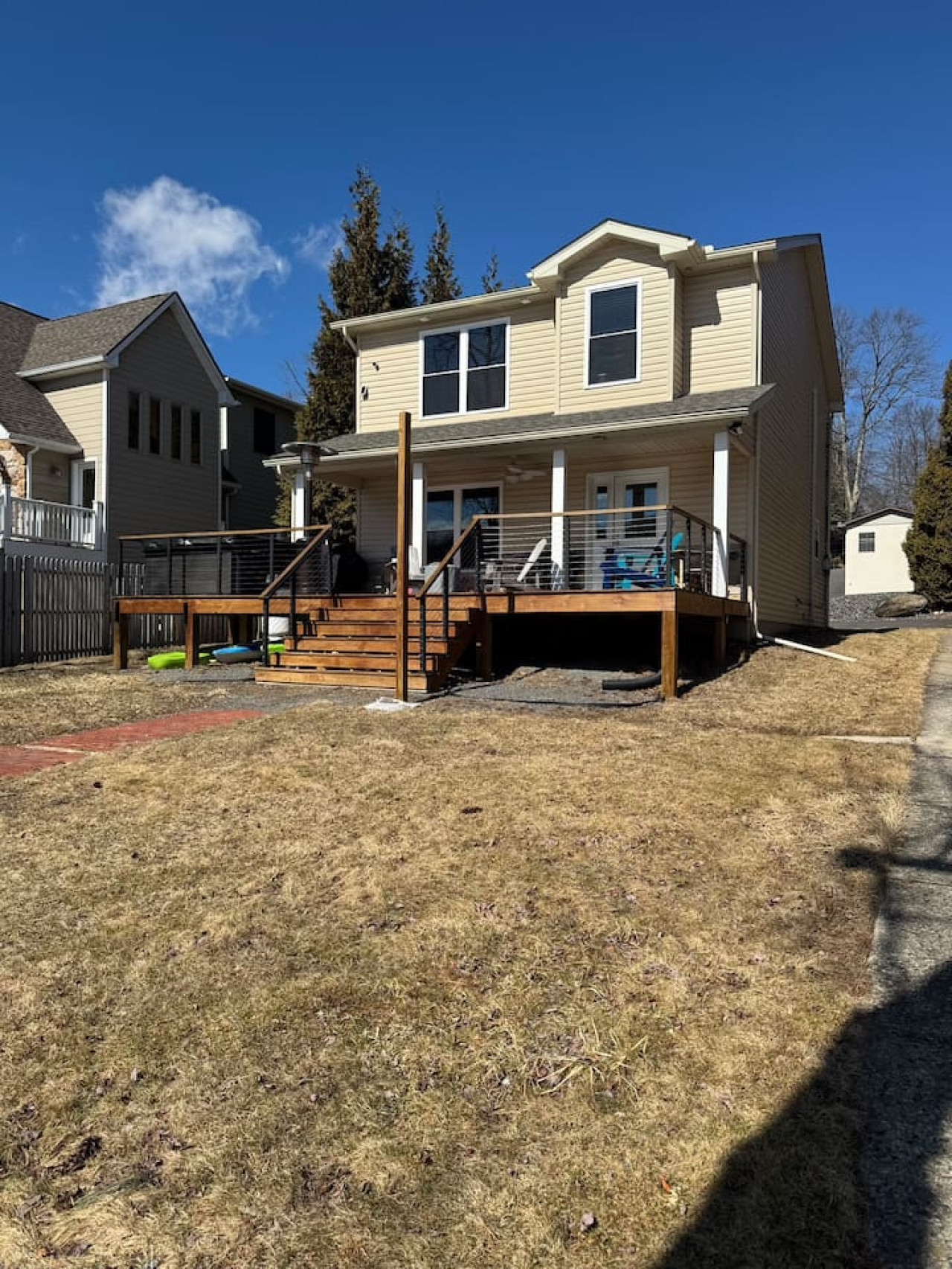 October 2025 3.00Note there's construction right next door as of Oct 2025 (not host's fault of course but we were not forewarned at all - excavation, chainsaws etc. starting 8am weekdays). Pros: Great location right on the water, nice deck and hot tub! Cons: very uncomfortable beds - we had 4 adults and all agreed. Master bedroom mattress is very hard. No K cups or coffee were provided for the tiny machine and no regular coffee maker was available. Loose deck railing and banister, chairs outside also had a lot of loose screws and seat on 1 kayak was broken/half repaired with broken string. With a little TLC and good mattresses, could be great, we loved the location and Lake Harmony is beautiful!